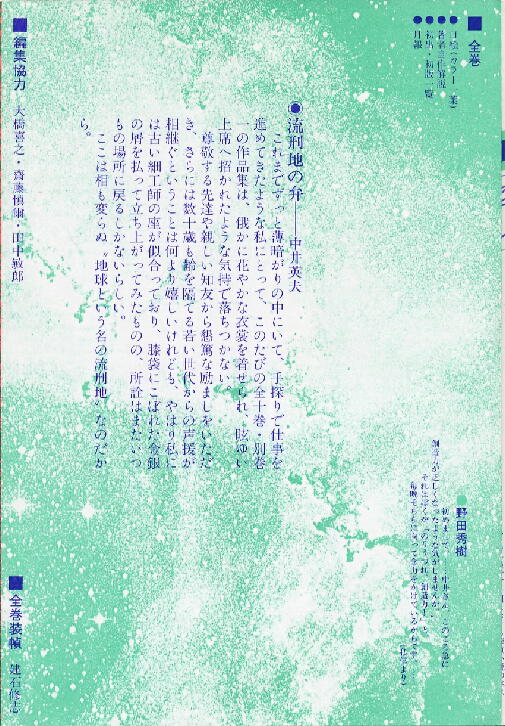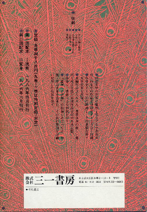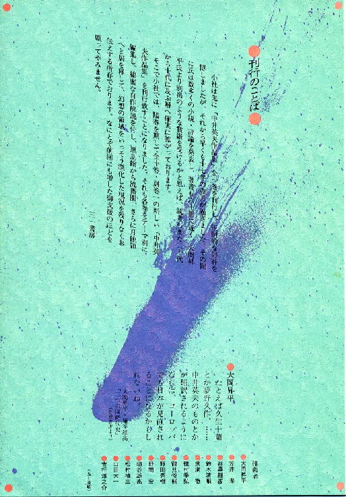 井文学の全体像を伝えていた『中井英夫作品集』(三一書房)の刊行案内です。